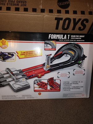 [This review was collected as part of a promotion.] The Formula 1 Grand Prix circuit set is a fantastic toy for hot wheels enthusiasts! The unboxing was incredibly easy as there is a perforated line to open on the long side of the box. It opens the box completely to see all the pieces. The instructions are easy to follow and the pieces are well constructed. Everything is labeled and can be put together with ease. It can also be taken apart with ease when needed to store. The finished project is large and needs adequate space. It comes with 3 cars to race. This toy does require 4 D size batteries which needs to be provided by the consumer. The cars can be set up to race by setting the lap counter with the button showing on the finish line flag. The cars race with perfect speed making it an epic race with hours of fun enjoyed by my kids.
