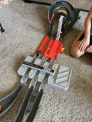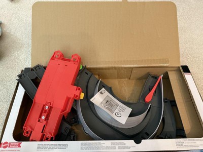 [This review was collected as part of a promotion.] The set was pretty easy to assemble, the instructions are clear with pictures. Assembly is a one time thing, so you won’t have to worry about it again. It takes 4 DD batteries to power, (not included) so you will want to have them on hand before setup. Pretty big size set, not just a small little circle. Really easy to operate, a switch makes the track either be a lap race, or infinite loops. My son loved the speed and the function of this set. It has a couple different paths the cars can go on, so it’s not just the same over and over. He really liked the lap race, it has a counter feature on it, and after a certain amount, part of the track flips up to stop the race with the winner in the front. Keeps his interest for a good amount of time. I did not let him keep the wheels running constantly, because I know batteries don’t last forever. He still had fun pretending with them driving around the track. Cool addition to his current collection.