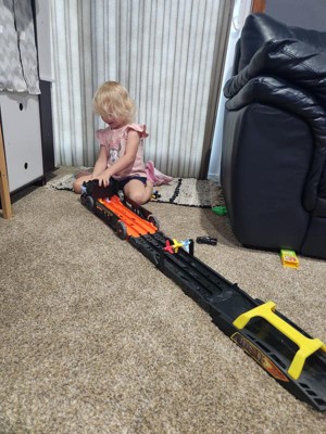 [This review was collected as part of a promotion.] This batman racerverse hauler/raceway is a lot of fun for my son. He just got into the racerverse cars and the fact that this not only stores 20 cars but also turns into a race track is great in keeping him entertained, while also helping me organize his cars. The intructions that come with it are very straight forward, and it is easy enough for my son to transform it between the two things by himself. He loves the monster that he has to "catch" by sending the cars down the track. I also love the ability to connect other hot wheel tracks so that you can extend the raceway a little bit. Would definitely recommend this to friends.