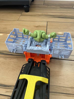 [This review was collected as part of a promotion.] I really like this Hot-wheels. It came with two mini cars, one Joker and the other Batman. It has a big green monster that pops out of a cage looking thing. There is a total of four pieces. Over all my son really likes it