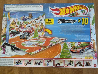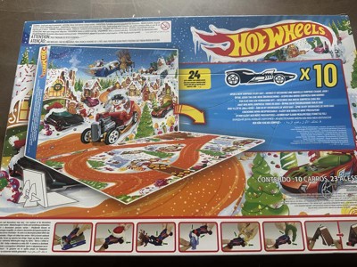- With 34 pieces in all, collectors and kids 3 years old and up can rev up the holiday spirit with 24 days of Hot Wheels!
