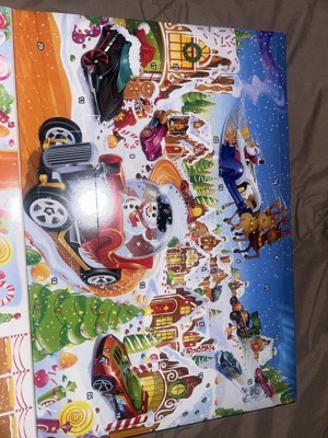 [This review was collected as part of a promotion.] My kids love this advent calender, it comes with very fancy cars and a very nice cardboard racetrack built it.,...its super adorable and easy to play with no messes. They love the car attachments and the gingerbread person. They have so much fun with this, I wish it had a bigger track but it works conveiently.