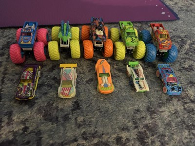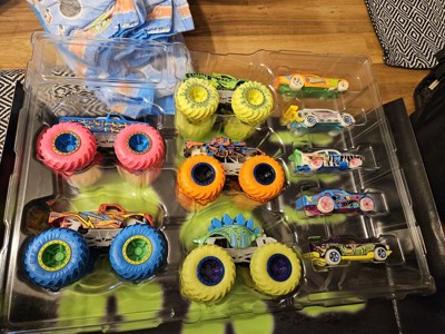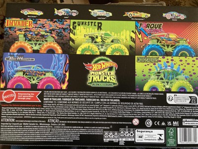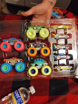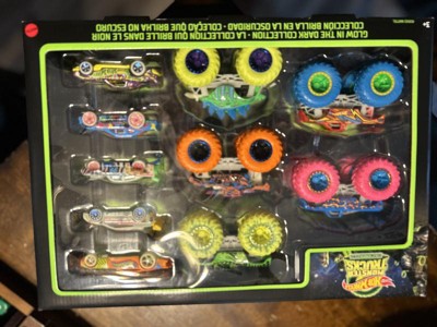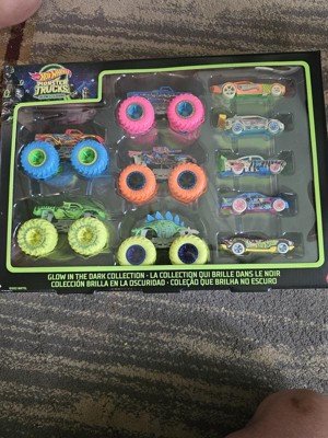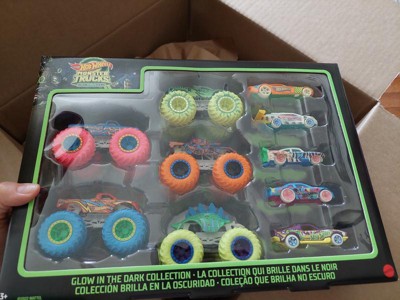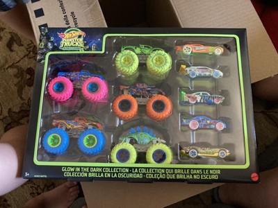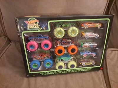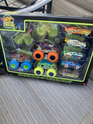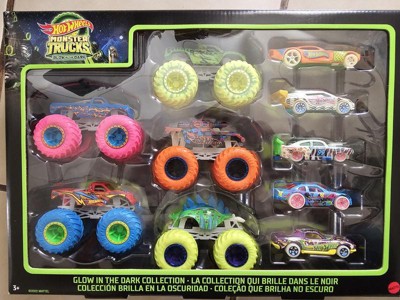 Hot Wheels Toy Monster Trucks 10-Pack of Glow-in-The-Dark 1:64 Scale Vehicles, GITD Set of 5 Trucks & 5 Cars, Play Vehicles for Kids & Collectors