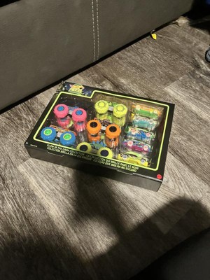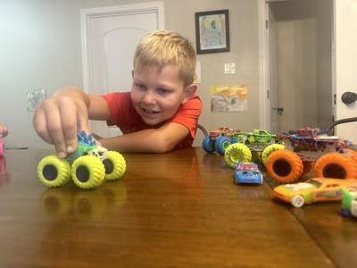 [This review was collected as part of a promotion.] This set has provided hours of fun for my monster truck loving son. He takes them with him where ever he goes in the house - sets up ramps, jumps, tricks, everything. His favorite part was discovering them glow - he was not expecting it (and I didn't tell him) so to see it happening was so much fun. He now races them in the sunlight for as long as he can just to see how long they glow - and when they glow they have a special glow in the dark race throughout the rooms. Overall - a great set for anyone who loves big tires and cars.