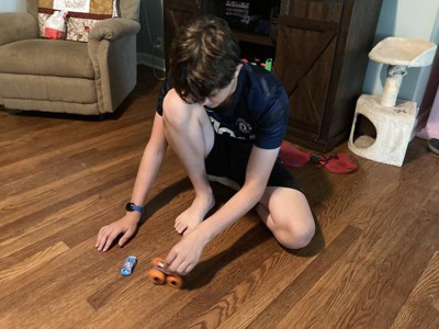 [This review was collected as part of a promotion.] This is an excellent toy for any young kiddo! It fits the Hot Wheels brand extremely well. My three oldest kids (ages 2, 5, and 7) love playing with these. These are perfect for imaginative play on a car mat and are sturdy enough to play with outside. The glow-in-the-dark feature makes them even more fun to play with because they can be used in dark settings. I'd recommend this toy to kids who love Hot Wheels and want a unique set of vehicles that can be played with in a variety of manners.