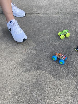 [This review was collected as part of a promotion.] These cars/monster trucks glow in the dark. My boys love them. We have no issues with how they perform. They glide across the floor with ease on hard wood and carpet. The boys both love that they glow in the dark and make sure to put them in the sunlight during the day.