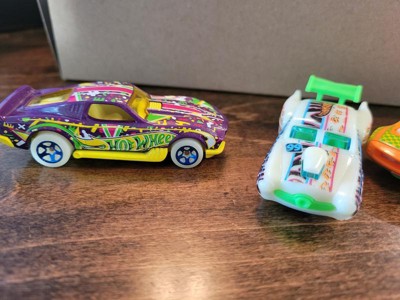 [This review was collected as part of a promotion.] These little cars are amazing… My son loves all things Hot Wheels. The glow in the dark factor made them even cooler!! He threw in his track, and played with them for hours. The cars are very well made and easy to play with!