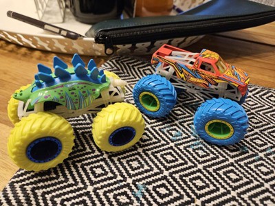 [This review was collected as part of a promotion.] Monster trucks are amazing. My three-year-old is obsessed with truning our the lights in letting them grow glow. The big wheel on the trucks and colors makes the toys even better. Also rhe cool designs on thw cars gets my son attention.