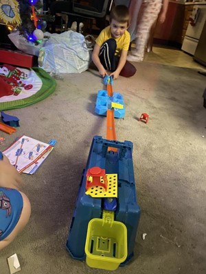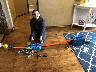 [This review was collected as part of a promotion.] My 6 year old loves the Hot Wheels track builder! There are so many different ways to set up the track, so it keeps it very exciting. And the fact that it can be packed all back up into the case makes clean up and travel with it so easy!