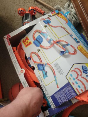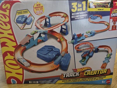 - Features Speed Snap track that make assembly easier and includes adapters for connecting to legacy Hot Wheels e-track.