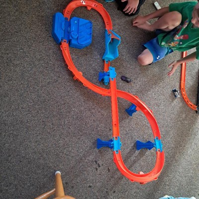 [This review was collected as part of a promotion.] My kids love this set. The figure 8 track setup is their favorite. They love to run all their cars thru to see which car can go around the most times without crashing. This set uses the newer track connectors. They’re easier for kids to put together. It comes with connectors for older track as well, so you can use all your pieces. The booster is a great addition to our track collection. It sends cars flying really fast, which lets them go further down a track. The jump is another part they love. This is a great set for kids who love to build their own track designs.