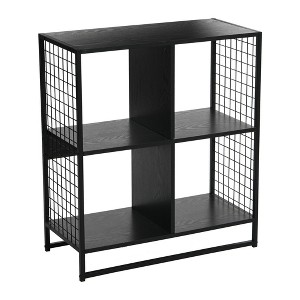 Upgrade your standard cube wall shelves with this attractive 4 cube storage organizer! This shelf unit offers multiple options for storage while adding to the attractiveness of your space. These shelves fit standard cube organizer bins, so you can use this organizer with drawers, but the cubes are attractive enough to use as shelves without bins. Use the shelves with bins to tuck items away and hide clutter for a neat and tidy space, or put items on display along with the shelves. This would make a great functional, decorative piece for any home, apartment, office or dorm. This unit has a trendy retro modern look with an industrial mix of metal and dark woodgrain laminate. The look and size of the unit would be perfect for a record player stand and record organizer as each cube is large enough to fit standard LP records, though there’s no limit to how you can use and display this attractive cube storage organizer. The modern industrial design is a trendy yet classic look that mixes well with a variety of design elements and styles for numerous different functions. Use it as a bookshelf, an entertainment center, a room divider, a hall console, kitchen organization and more. This shelving unit is made of quality engineered wood, so it’s light and durable, and comes ready to assemble for fast and easy setup. The legs of the unit are metal for added durability and a more attractive industrial appearance.