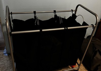 Household Essentials 3 Removable Bags Laundry Sorter with Wheels: Steel Frame, Portable Hamper Sorter, Silver
