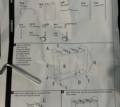 This laundry sorter is wonderful like the idea of being able to remove the bins to take to the washer or be able to clean them if necessary. My previous sorter couldn't do that since it was all attached together. Easy to move the sorter around with the wheels attached. Was easy to assemble with the tool enclosed.