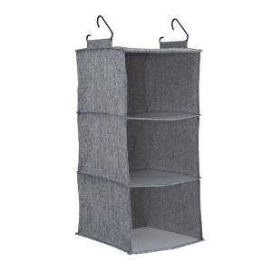 Closet space will no longer be a scarcity with the 3-Shelf Hanging Organizer from Household Essentials. It creates vertical storage in your closet giving you more possibilities for use. The shelves can be used to store folded clothing such as sweaters, shirts, jeans and pajamas. It can also be used to organize extra linens in the hallway or store items like pocket umbrellas and shoes in an entryway closet. It will add a sophisticated touch to your closet layout. The shelves’ fabric lining is breathable, allowing fresh air to circulate through items stored. This will prevent stale air from affecting your clothing and other accessories. The PEVA shelf bottoms give the shelves a more rigid structure to prevent sagging as well. This will preserve the organizer's attractive design through repeated daily use. To set up the shelves, use the 2 sturdy hooks attached at the top to hang the organizer on either a standard rod or wire closet shelf. The 3-Shelf Hanging Organizer presents a great opportunity to organize storage spaces to your liking.