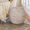 - This round, handwoven wicker basket side table is a beautiful storage addition to your living room or bedroom that can double as a side table or extra seat