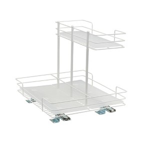 - This cleverly designed, durable powder-coated steel organizer is crafted to accommodate sink pipes or taller essentials with a narrow top tier and full-sized bottom tier; Equipped with an easy-mount full-extension ball-bearing sliding base