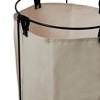 - Black metal laundry hamper with removable natural polyester/cotton blend insert; Insert is washable