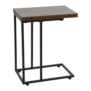 - Functionality: This convenient C shaped side table features a fold out top that doubles the table's size. Keep more of what you need within reach by using this table as a couch table for remotes, TV tray table for snacks, a bedside nightstand, a laptop table or breakfast desk.