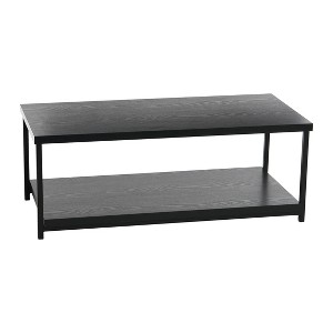 For a low-profile yet stylish addition to your living room, look no further than this modern dark coffee table. This wide coffee table is a member of the Household Essentials Black Oak Collection that provides elegant and durable furniture pieces for use in any room. This modern coffee table accomplishes a chic modern design with its smooth top and sleek black frame. This coffee table has luxurious faux concrete laminate shelving for an on-trend look without the weight. The minimalist steel frame fosters a strong construction, promising to hold up to many years of watch parties, family get-togethers and football games! Its wide top offers plenty of space for impromptu snack buffets or a few pieces of decor. The lower shelf also provides additional space to store blankets, house shoes, books and much more. This versatile coffee table could also be used as a work table, entertainment center or even a bedroom storage bench! Assembling this coffee table is super easy, and its minimalist profile would be a space-saving wonder for a new apartment or townhouse. The Scandinavian design pairs well with any pre-existing room layout, making this calm color coffee table a great choice for those struggling to find matching furniture pieces.