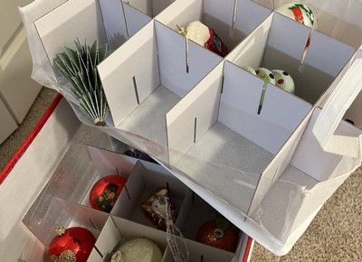 - This whimsical ornament chest features a window vision panel and 48 adjustable storage pockets