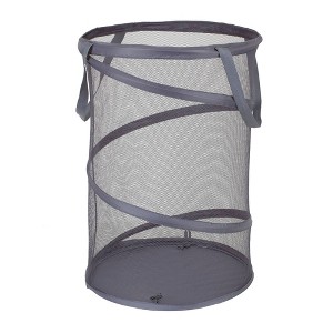 Household Essentials Pop Up Hamper Poly Mesh Bag Gray: Portable Collapsible Laundry Basket, 25" Height, 3.7 Cu Ft Capacity