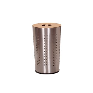 Household Essentials Round Brushed Stainless Hamper Wood Lid: Clothes Hamper with Lid, Removable Liner, Built-In Handles