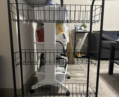 Household Essentials Slimline 3-Shelf Laundry Cart Black: Portable Steel Utility Storage Rack with 20 lb Capacity