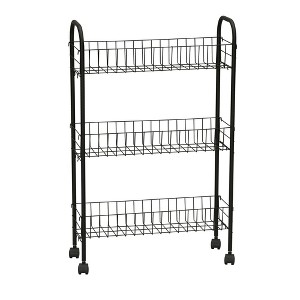 This Slimline 3-Shelf Laundry Cart can add a little extra storage and organization to almost any space. At just 7-inches deep, this rolling storage cart can slide easily in between a washer and dryer, into a narrow space in a bathroom or pantry or even a wider space next to the refrigerator. The storage cart consists of three basket shelves. The storage baskets can easily accommodate standard-size laundry detergent bottles, dryer sheet boxes and other laundry essentials. Or, if used in the kitchen or pantry, the baskets can hold cans, boxes, jars and more. Use it in the bathroom to hold styling tools, accessories, toiletries, cleaning supplies or anything else you need to keep handy but tucked away in a small space. Use it in an office or craft room to keep supplies nearby, or even to hold plants. The Slimline 3-Shelf Laundry Cart can be used in many rooms so you may want two!