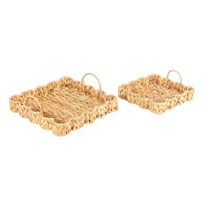 Enhance your home with the natural beauty of this Set of 2 Woven Water Hyacinth Scalloped Square Trays. Handcrafted from sustainable water hyacinth, these trays feature an elegant scalloped edge and a sturdy square shape, perfect for both functional use and decorative display. Ideal for serving, organizing, or styling a tabletop, the trays add a warm, organic touch to any room. Their natural texture and versatile design make them an ideal complement to a variety of decor styles, from coastal to rustic.