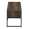 This modern, clean-lined TV stand will elevate any home office or living space with its classic design and unique wrap detail. Stylishly display your television on the top tier, and decorative accents or gaming and entertainment systems in the sleek storage space below. The timeless finish and eye-catching wrap detail will carry this end table through any style transition from rustic and industrial to mid-century modern. TV stand is made from sustainable particle board and measures 43.25" W x 15.5" D x 18.375" H. Equipped with adjustable feet to stabilize and protect floors.