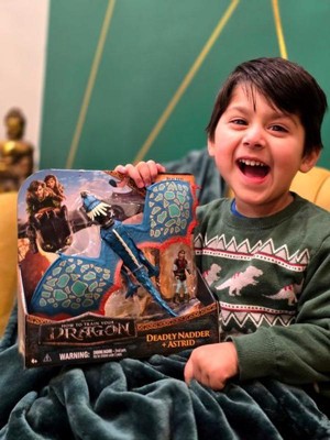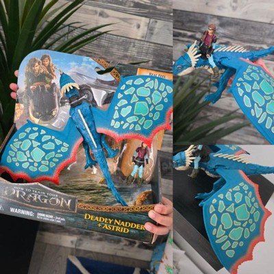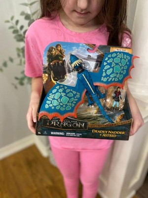 [This review was collected as part of a promotion.] We were very excited to get this product. My child has recently been rewatching the original how to train your dragon movies and is very excited at the idea of a new release. She was really happy with this toy. It is well made. It looks like a good representation of the Deadly Nadder. We liked that Astrid fits well to sit on the dragon without falling off. And the flexibility of the wings allows for fun flying action. Over all it was a thumbs up from my daughter