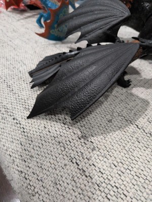A: Hookfang (Monstrous Nightmare): 24 inch long Stormfly (Deadly Nadder): 10.5 inch long Meatlug (Gronckle): 6 inch long Toothless (Night Fury): 14 inch long Hope this helps! :)