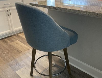 [This review was collected as part of a promotion.] This swivel counter stool is surprisingly fabulous! It’s very sleek design accents our kitchen so beautifully. Great quality, and we love the swivel function. Compared to our old stools though, the seat is quite stiff and not on the comfy side while seated.