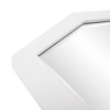 Inspired by the artwork of Thomas Abrams, these asymmetrical mirrors can go from small accent spaces when used alone to larger impact displays when used in multiples. The subtle matte white finish allows the mirror to fit perfectly into a contemporary setting where the unique shape takes center stage. Dimensions: 16 inch width x 11 3/4 inch height x 3/4 inch depth