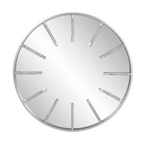 One of the characteristics of an Industrial styled mirror is the unique use of materials that make up its design. In this case, the Boulon Mirror uses narrow springs equally spaced around a round iron frame to define its look. A bright silver finish highlights the industrial look. Keyhole attachments are affixed to the back of the mirror so it is ready to hang right out of the box! 35 1/2H x 35 1/2W x 1 1/4D