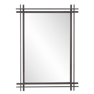 Our Clarke Mirror features intricate detailing of dimensional crisscrossed parallel lines fashioned from iron into a rectangular frame. The graphite finish blends to create this unique, industrial look. This collection is so versatile that many of our accent tables and decorative accessories can easily be paired up to make a statement. Keyhole slots are manufactured into the back of the mirror so the piece is ready to hang right out of the box in either a horizontal or vertical orientation. Dimensions 42 1/2H x 30 1/2W x 1 3/4D
