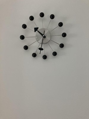 - HIGH QUALITY: The circle design will ensure you can read the time anywhere in the room. Easily tell time with the brushed nickel-finished center, surrounded by 12 black satin balls on nickel-finished rods, and black hands to complete the duo-tone style.