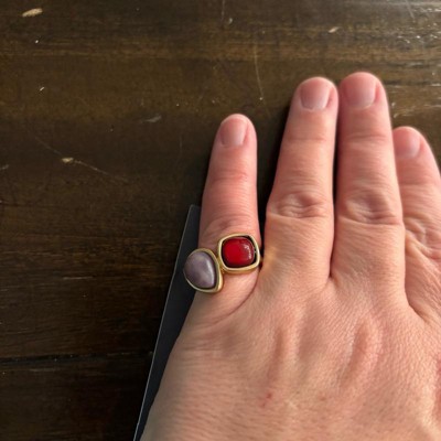 [This review was collected as part of a promotion.] I feel like the sizing of these rings run small. The rings fit my fingers kind of oddly. They are a pretty gold that is not a super bright gold but muted or brushed. I really like the colors and style of the rings. They are chunky and a great accent to your outfit if you can find the right fit. I feel like these are well made and a great price. I just think you should try to try them before you buy them I received an incentive to write this review.