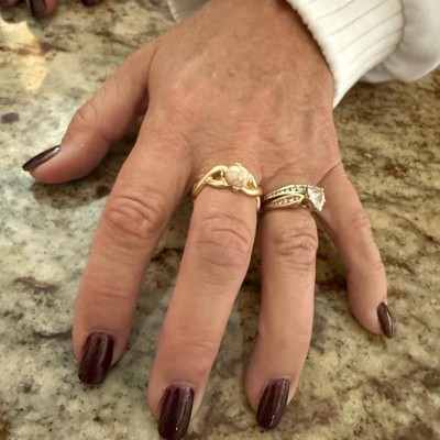 [This review was collected as part of a promotion.] This three-piece ring set is a great accessory to have in your jewelry box. This set of rings comes in assorted sizes of 7, 8 and nine. These are designed to look like yellow gold and two have embellished stones. These are very lightweight and smooth on the inside around the band. One ring has a weave design with a white round center stone, one design is two in set stones, and one is a thicker band with some decorative designs. I received an incentive to write this review.