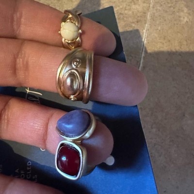 Howlite and Lepidolite Stone Embellished Ring Set 3pc - Universal Thread™ Gold