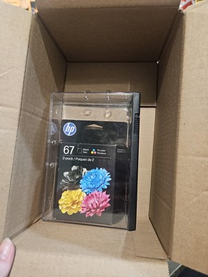 - What's in the box: 2 new Original HP 67 Ink Cartridges - 1 black, 1 tri-color (3YP29AN)