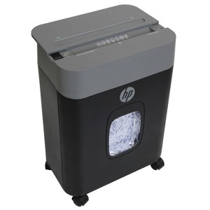 The HP-CC8 Crosscut Shredder from HP protects all sensitive documents to avoid identity theft. It shreds up to 8 sheets at a pass as well as small staples and credit cards. It also features an easy pull-out bin with viewing window so you can see when to empty. Casters let you move the HP-CC8 from room to room with ease. A unique Slide-Top housing hides the paper entry slot and electronics for a smooth, sleek functional surface. The large 3.4-gal. pullout waste bin holds hundreds of shredded pages. The shredder comes with a full 1-year warranty.