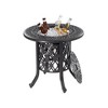 - Made with a cast aluminum frame, this ice bucket table is designed to never rust, ensuring a long-lasting and weather-resistant addition to your outdoor setup.