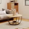 - Featuring a smooth round design, this coffee table does away with sharp corners, greatly reducing the risk of collision injuries. Whether placed in the center of the room or next to the sofa, it allows people to move around easily, combining safety and convenience perfectly for your living space.