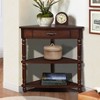 - Sturdyand stable solid wood legs ensure that this corner table last long enough and your daily storage needs are met. The top can hold up to 88 pounds, and the single shelf can hold up to 55 pounds to free up more space. The capacity of drawer is 17 LBS.