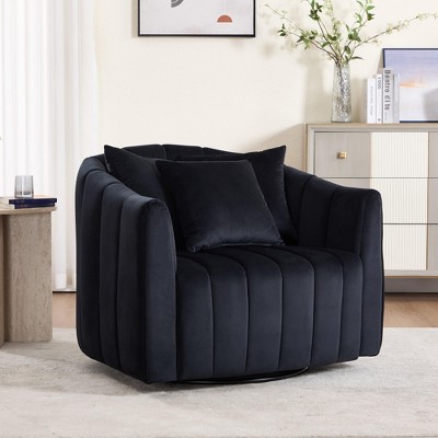 Hrinhom 40.4"W Oversized 360° Swivel Accent Barrel Chair,Upholstered Half Cozy Sofa with 3 Pillows