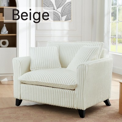Hrinhom 42"W Chenille Single Sofa Armchair with Dual-Port Charger-Beige