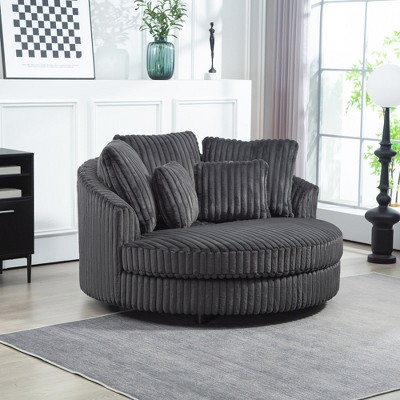 Hrinhom 59.8"W Slipcovered Barrel Sofa Chair,Modern Upholstered Chenille Accent Chair With 5 Pillows-Charcoal