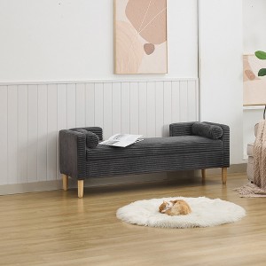 Hrinhom 65.4"W Corduroy Storage Soft Bench with Armrests